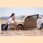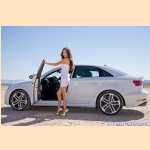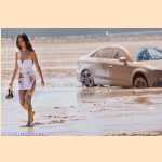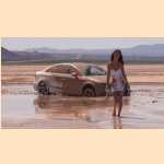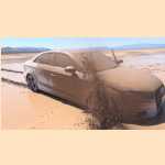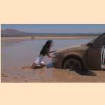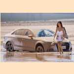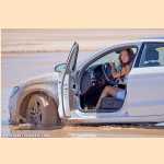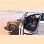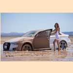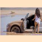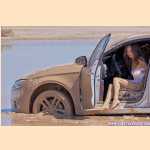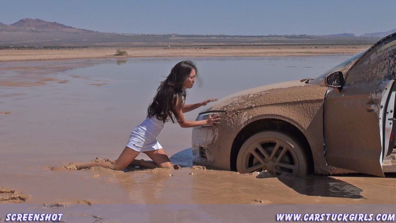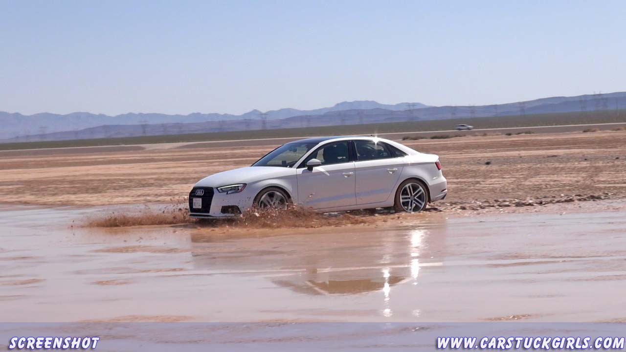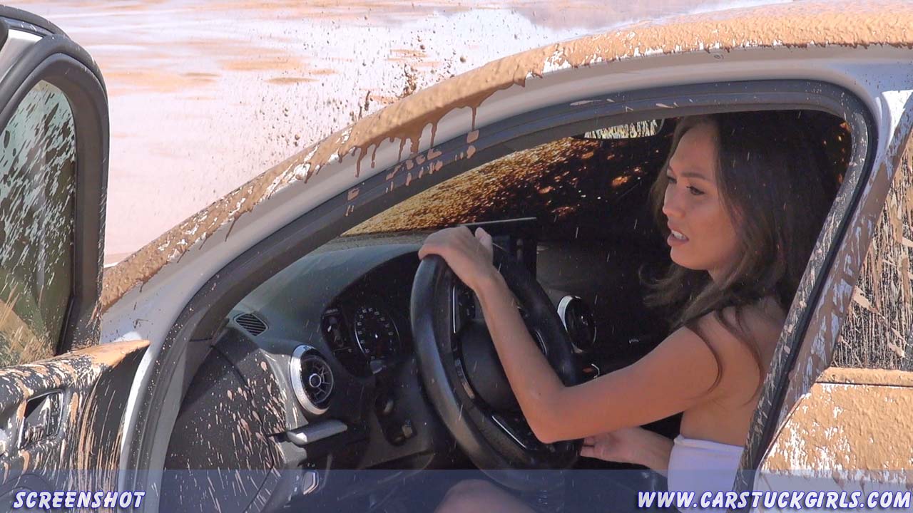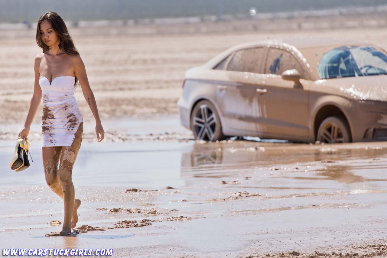 Girl pedal pumping stuck in mud with Audi