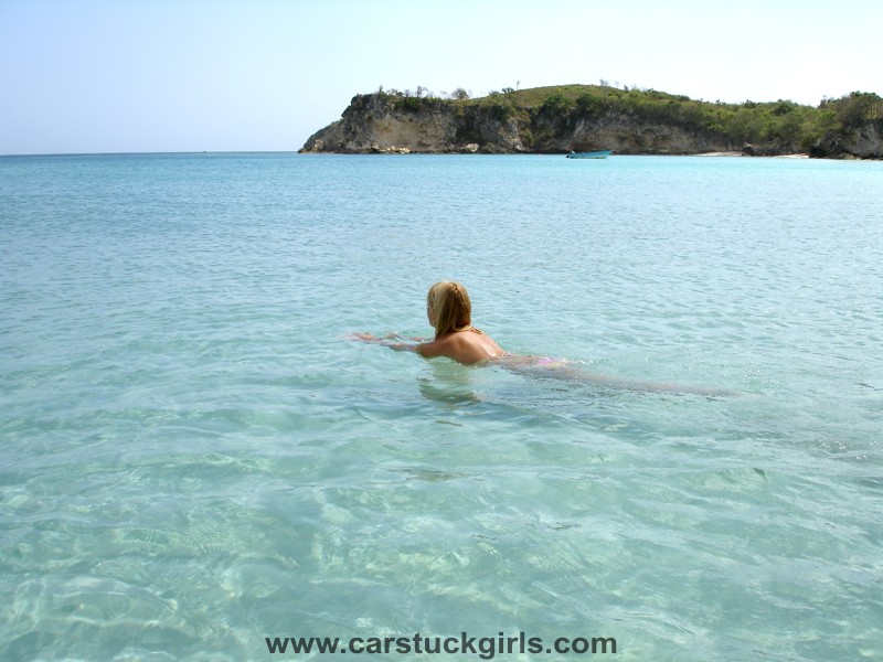 Caribbean Sea. She is looking for a lonely beach to relax.