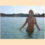 - she wears a sexy bikini