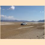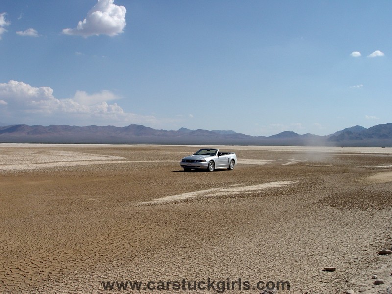 unfortunately drives on a lake bed beside the road. Her