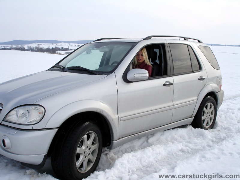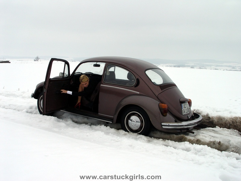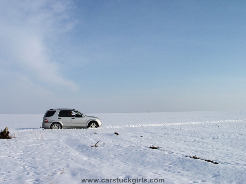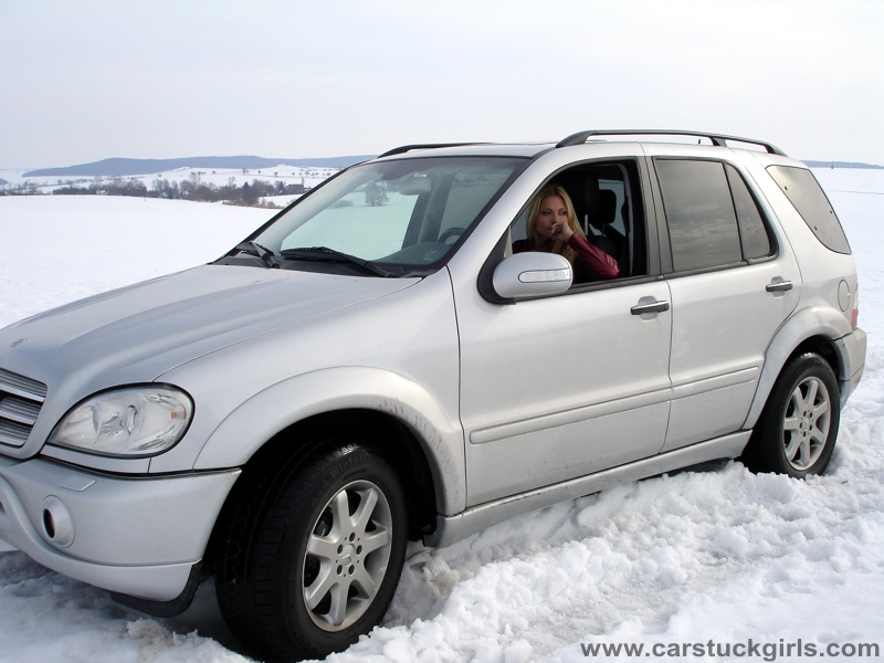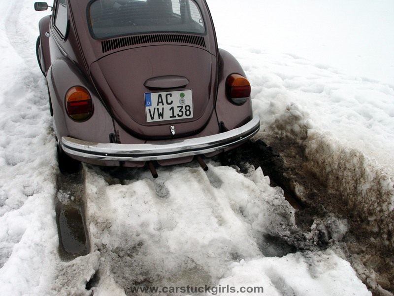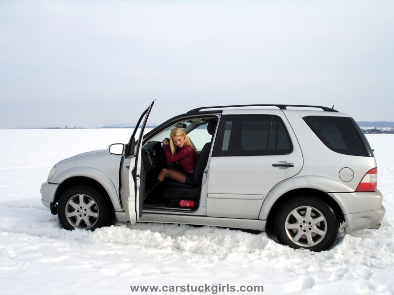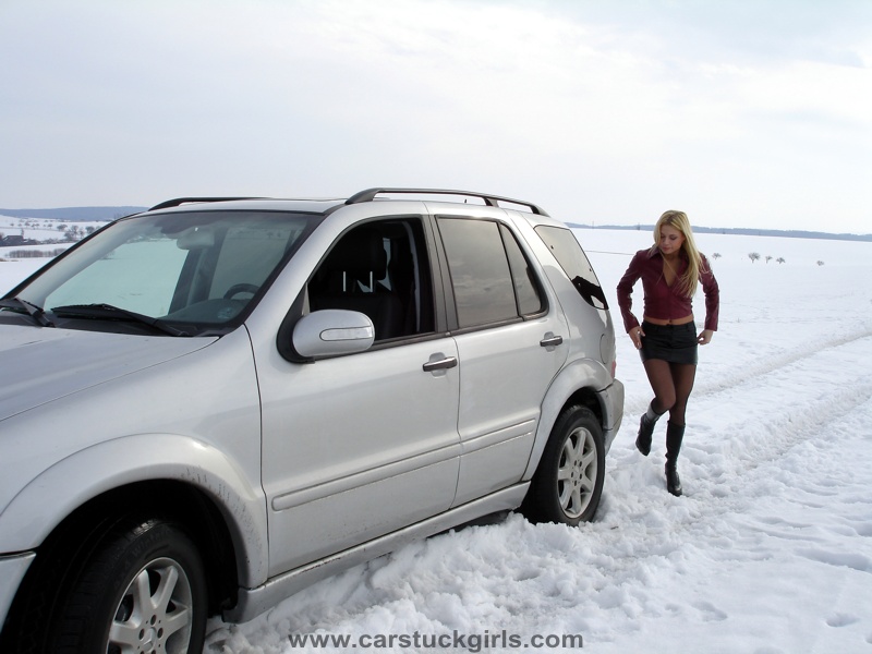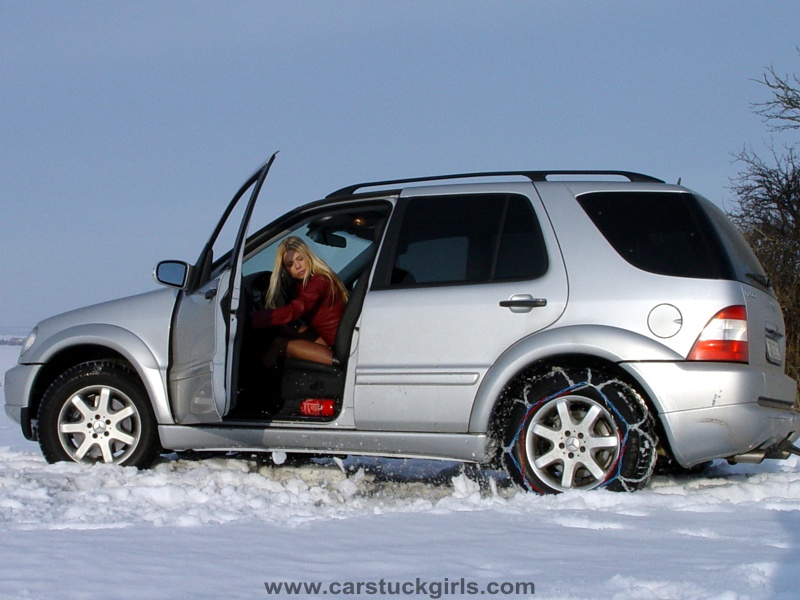 - she has to use snow chains to get free again!
