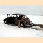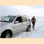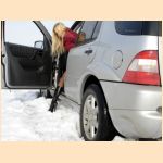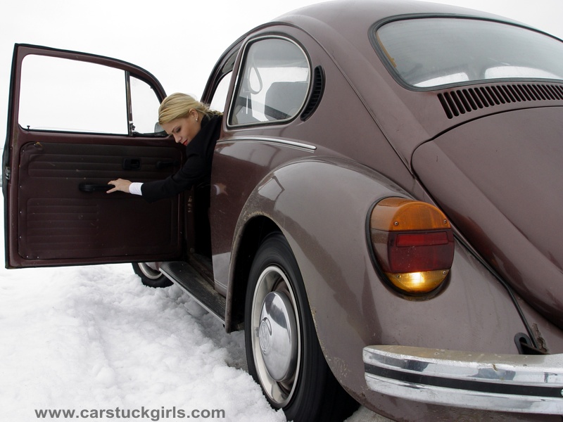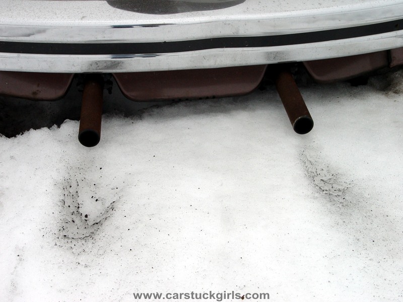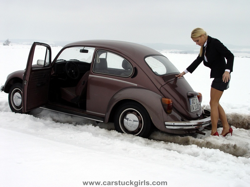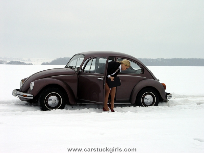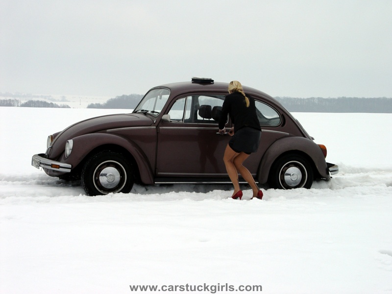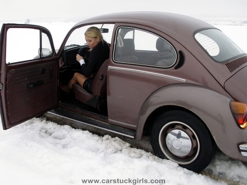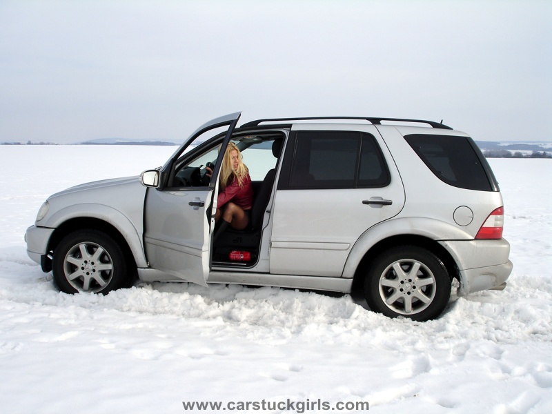 - she has to use snow chains to get free again!