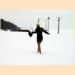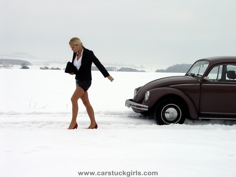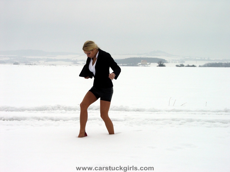 - in the end she has to walk through the deep snow ...