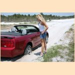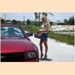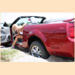 - Chrystal wears a short jeans skirt and high-heels jeans pumps (open-toed)