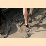 - Adriana walks barefeet through the mud and gets muddy herself!